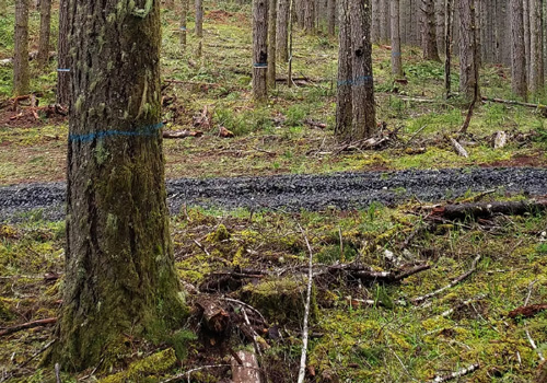 “Logging is restricted to dry-season conditions (to minimize soil impacts and road building costs), and avoided during early spring (to limit bark damage).”